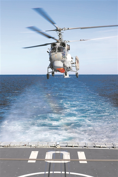 “立即开展协同反潜!”中方指挥所根据当前态势和综合情报向舰艇战术群下达反潜防御作战命令。随即,各舰载直升机依次升空前出;参演舰艇布放拖曳声呐;从我国某机场起飞的中方反潜巡逻机,首次经俄领空飞临演习目标海域进行反潜搜索……一连串组合拳打出去,形成的立体搜猎网逼向水下目标。