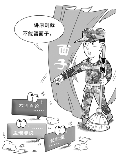 “要不是顾及战友的面子,我非得跟他好好理论一下不可。”某部一位班长面对战士的消极言论存有畏难情绪,连队指导员及时批评道:“原则远比面子更重要,对身边的歪理谬论要敢于站出来,勇于作斗争。”这一鲜明态度和导向,值得学习和点赞。
