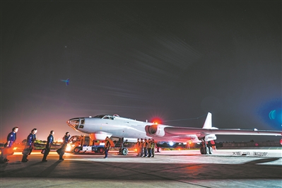 近日,海军航空兵某团组织夜间飞行训练,提升飞行员技战术水平。图为官兵做起飞前准备。胡飞摄