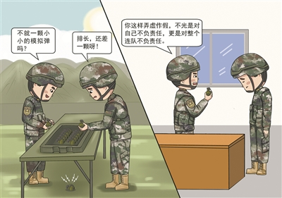 “事情经过我已经知道了。如果苏晓敏认同你的做法,在入库登记时‘打了掩护’,这颗模拟弹就可能永远被遗弃在场地里。模拟弹也是装备,不能随意丢弃。如果这是一颗未爆的实弹,将会造成巨大的安全隐患。你这样弄虚作假,不光是对自己不负责任,更是对整个连队不负责任。”听到连长的批评,我顿时羞愧得脸上发烫、无地自容。