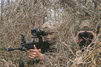 日前,空降兵某旅组织要点夺控演练,检验部队打赢能力。图为特战队员抵近侦察。 杨越旺摄