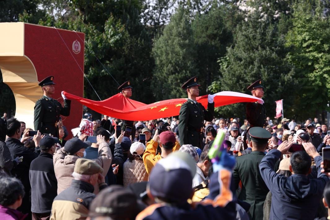 军旗见证浪漫,家国共贺良缘。10月18日上午,中国人民解放军北京老干部活动中心礼堂前广场张灯结彩,洋溢着别样的甜蜜与温馨,由中国人民解放军驻北京市老干部服务管理局等单位联合组织的“情定海淀·携手强军”集体婚礼正在这里举办。80对新人在部队官兵和亲属的共同见证下,携手步入婚姻的殿堂,用最浪漫的方式诠释“小家”与“大家”的家国情怀。他们中,有跨越千里、靠视频通话维系思念的 “异地恋”;有怀揣报国理想、共同投身国防事业的“双文职”;也有同为军人、在各自岗位上并肩奋斗的 “双军人”,不同的身份,不同的相守日常,终在此刻迎来圆满。