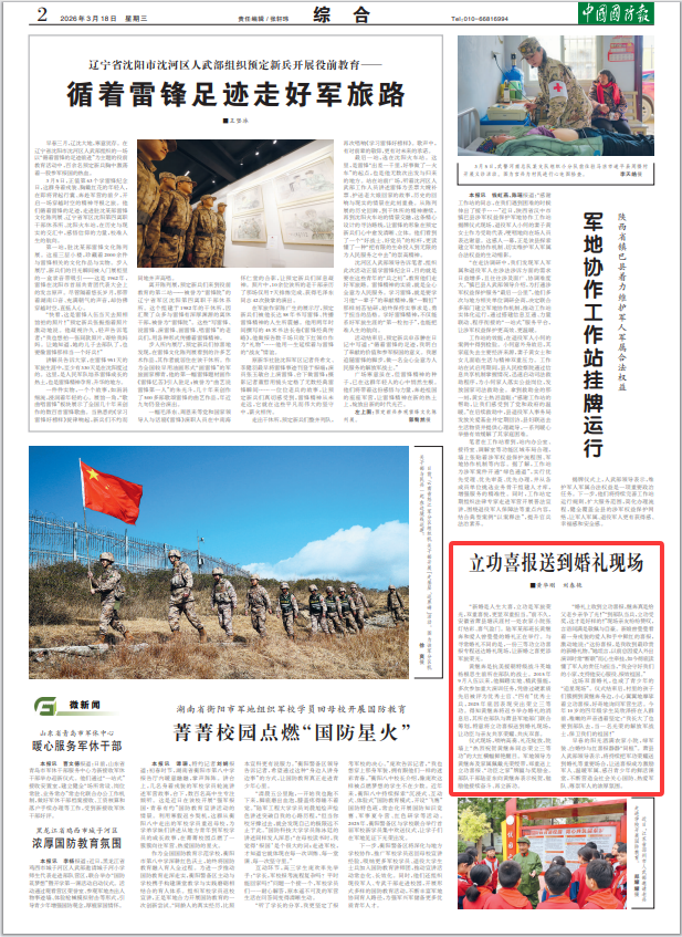 “婚礼上收到立功喜报,继奔真是给父老乡亲争了光!”“到部队当兵,立功受奖,这才是好样的!”现场亲友纷纷赞叹,言语间满是敬佩与自豪。新娘曾曼曼看着一身戎装的爱人和手中鲜红的喜报,激动地说:“这份喜报,是我收到最珍贵的新婚礼物。”她坦言,以前总因爱人外出演训时常“断联”而心生牵挂,如今彻底读懂了军人的责任与担当,“我会守好我们的小家,支持他安心服役、报效祖国。”