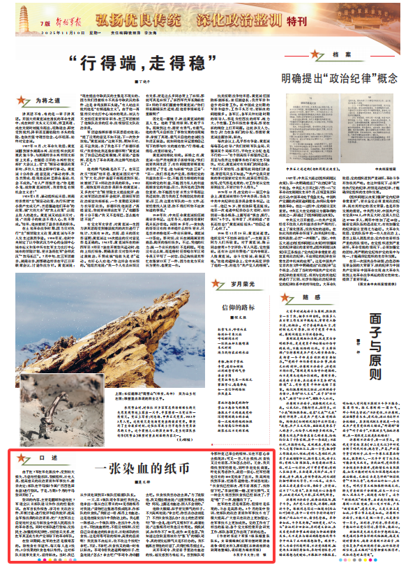 弘扬优良传统 深化政治整训丨一张染血的纸币