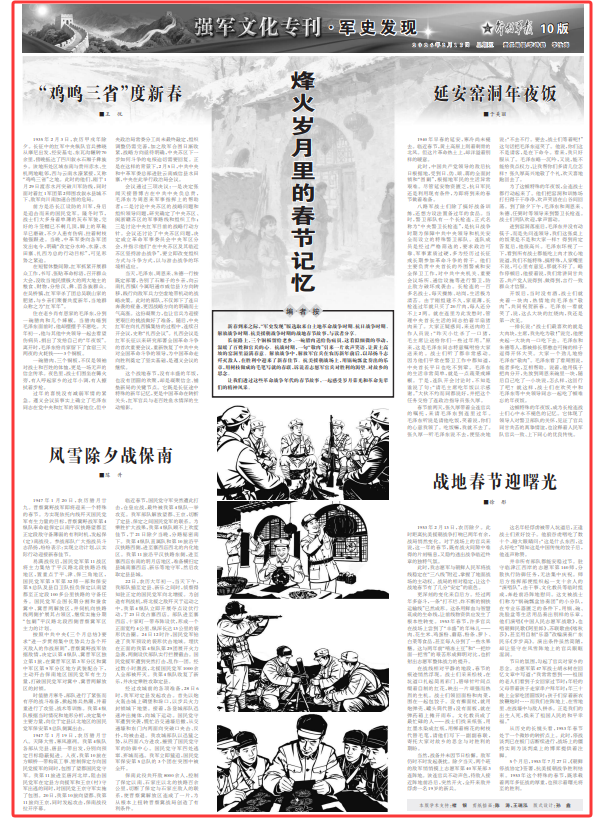 新春到来之际,“军史发现”版选取来自土地革命战争时期、抗日战争时期、解放战争时期、抗美援朝战争时期的战地春节故事,与读者分享。