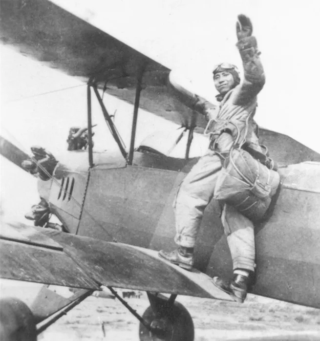 赵良璋站在飞机上留影。(南京雨花台烈士纪念馆供图)