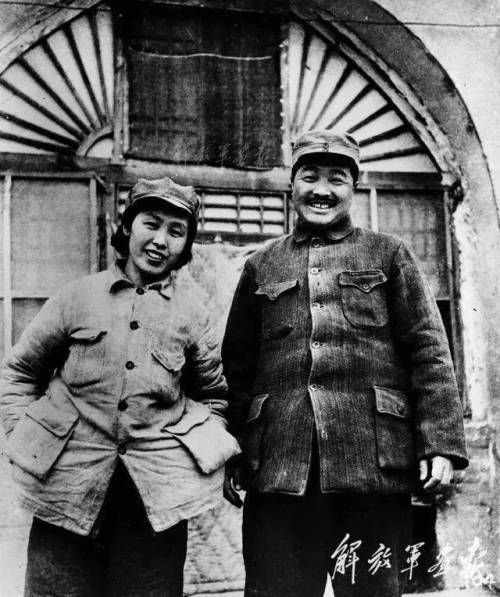 1947年9月,贺龙在山西兴县蔡家崖主持晋绥军区建军会议,并作总结报告。这是会后他与夫人薛明在晋绥军区司令部门前合影。