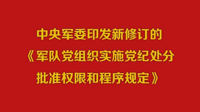 中央军委印发新修订的《军队党组织实施党纪处分批准权限和程序规定》