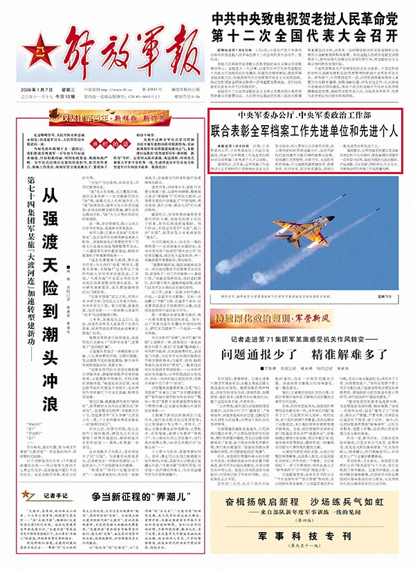 通报指出,近年来,全军档案工作坚持以习近平新时代中国特色社会主义思想为指导,深入贯彻习近平强军思想,深入贯彻新时代军事战略方针,坚持用新时代政治建军方略引领档案事业发展,有效履行为党管档、为军守史、为战服务职责使命,大力加强档案管理体系、资源体系、利用体系、安全体系建设,涌现出一批先进单位和先进个人。