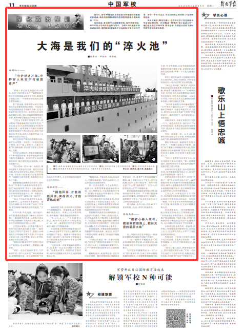 “我们一定会扛起时代重任,守护家国平安,守护人民幸福!”阳光映照海面,战舰犁波向前。淬火成钢的底气和向战而行的勇气,令学员们建功深蓝的信念扎得更深。