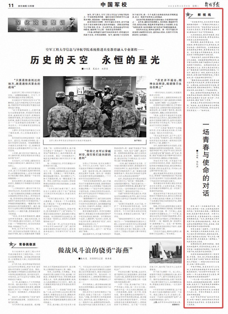 此次“军校学员说”成长分享交流会,如同一面镜子,映照出新时代军校学员理想信念逐步坚定、自觉投身使命的心灵轨迹。