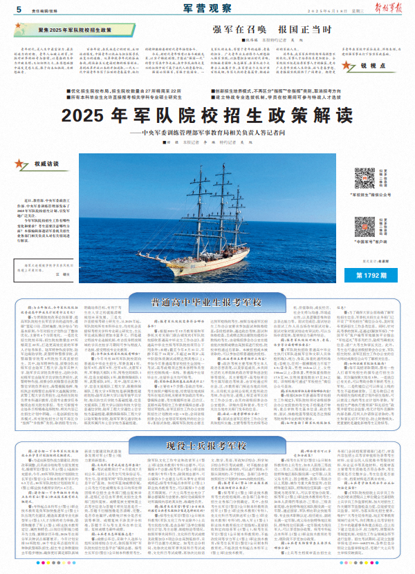 近日,教育部、中央军委政治工作部、中央军委训练管理部发布了2025年军队院校招生计划,引发军地广泛关注。