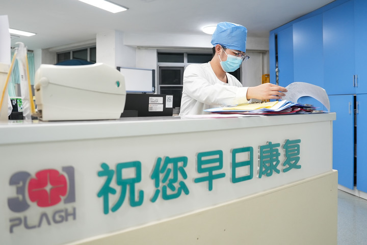 2月17日,在解放军总医院第四医学中心急诊医学科抢救室内,护士王信东在工作中。新华社发(韩启扬 摄)