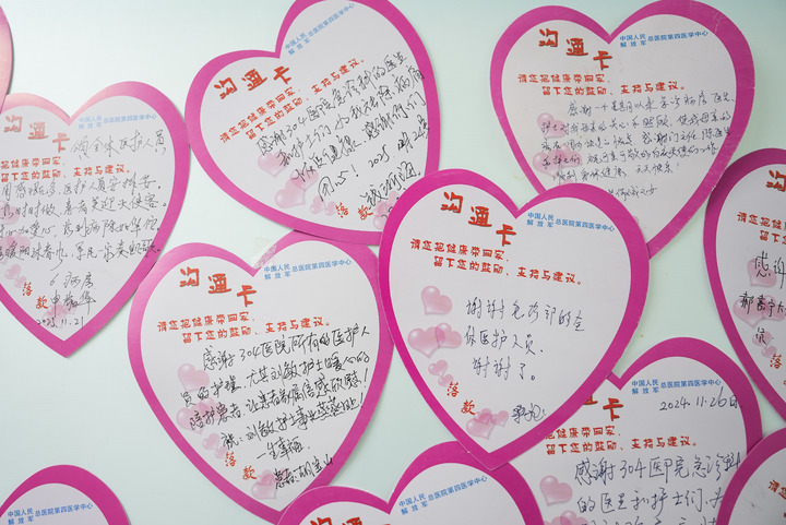 2月17日拍摄的解放军总医院第四医学中心急诊医学科病房内的患者沟通建议卡。新华社发(韩启扬 摄)