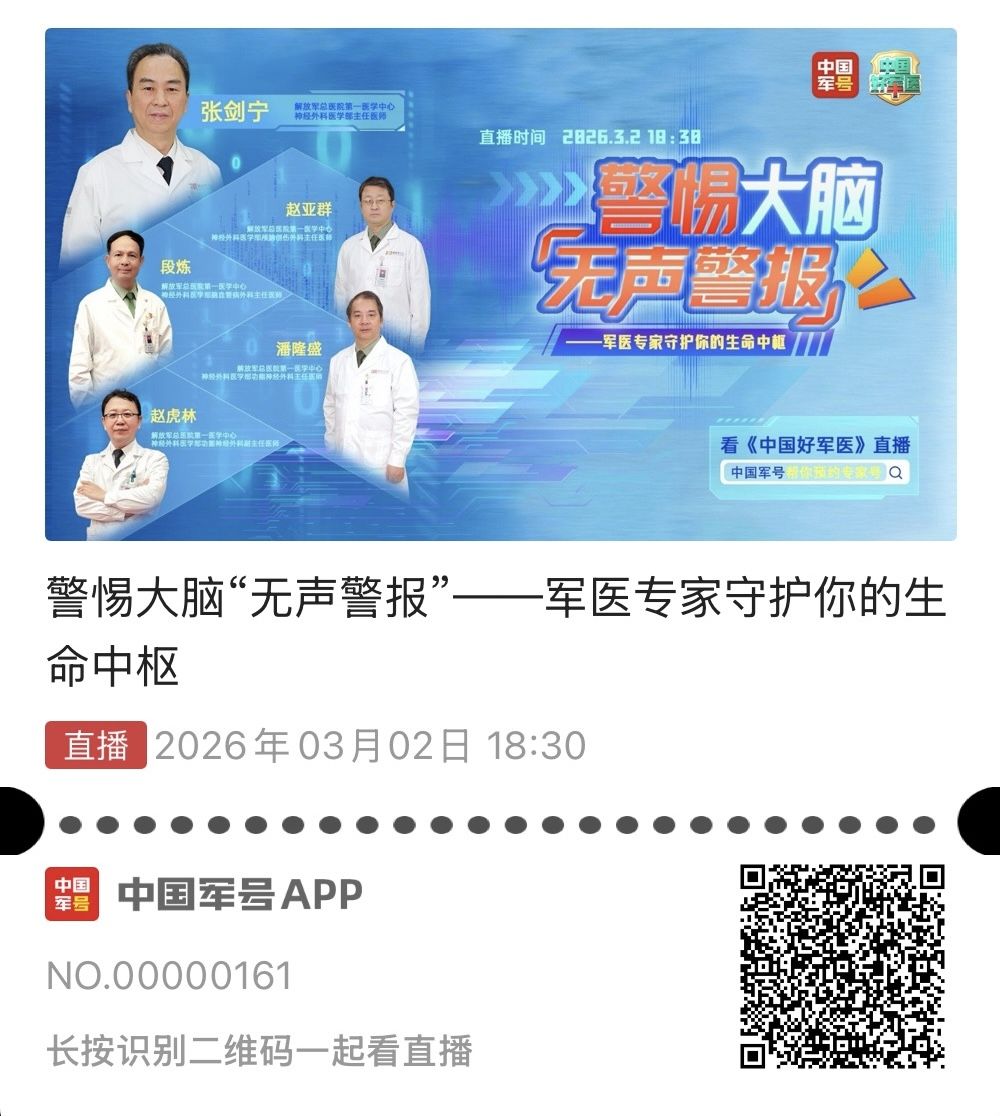 3月2日18:30,《中国好军医》特邀解放军总医院第一医学中心神经外科医学部权威专家团队,一次性讲透大家最关心、最容易混淆的五大疾病:听神经瘤:别把听力下降、耳鸣不当回事
