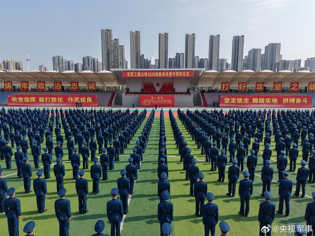 近日,空军工程大学中心校区大操场上,2025级新学员授予军衔仪式庄严举行。经过两个多月的淬火磨砺,顺利完成新训任务的学员们佩戴上了象征责任与荣光的“一道杠”肩章,正式开启军旅生涯新阶段。为新战友点赞加油!