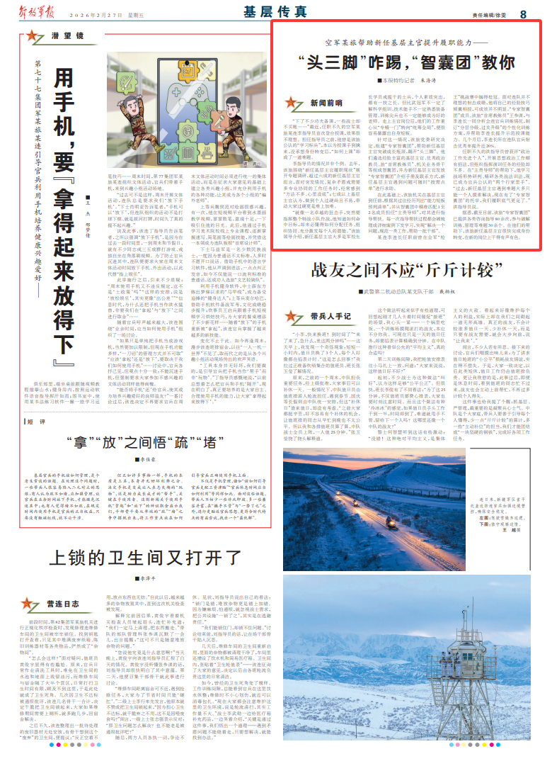 任职不久的洪指导员曾获评“政治工作先进个人”,开展思想政治工作颇有招法,但组织指挥演训任务的经验却不多。在“主责导师”的帮助下,他学习战场形势研判、精研各类战法训法,现已成为官兵公认的“两个行家里手”。“过去,新任基层主官遇到难题大多只能一个人摸索解决,现在有了‘专家智囊团’的托举,我们履职底气更足了。”洪指导员说。