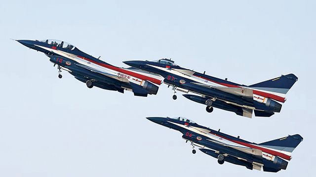 中国空军八一飞行表演队进行新加坡航展适应性训练