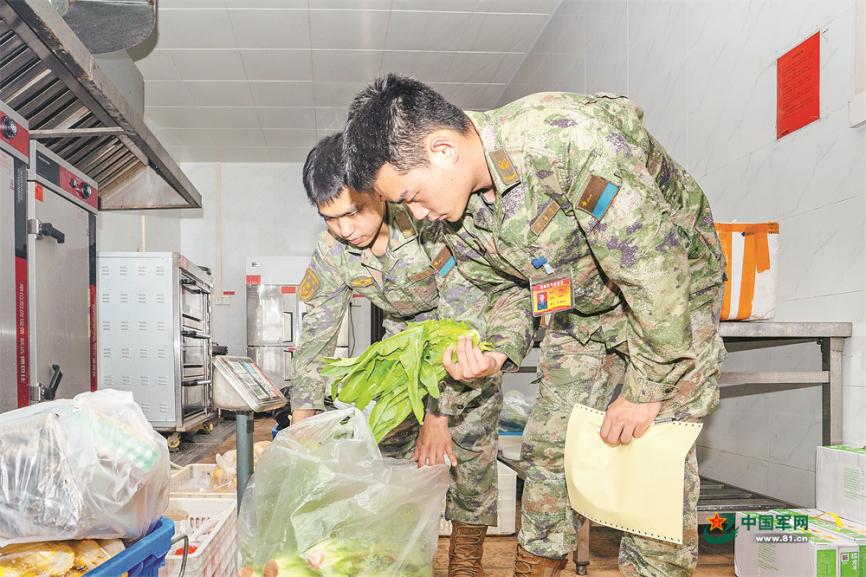 某部风气监督员正在点验采购食材。李啟万摄