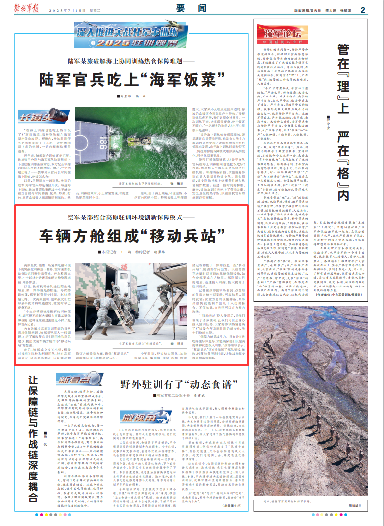 “保障力就是战斗力。只有让官兵吃好住好休息好,才能确保他们以饱满的精神状态投入训练。”该部领导表示,“移动兵站”还有效缩短了部队架设、撤收、转移装备所需时间,让作战指挥变得更加高效顺畅。
