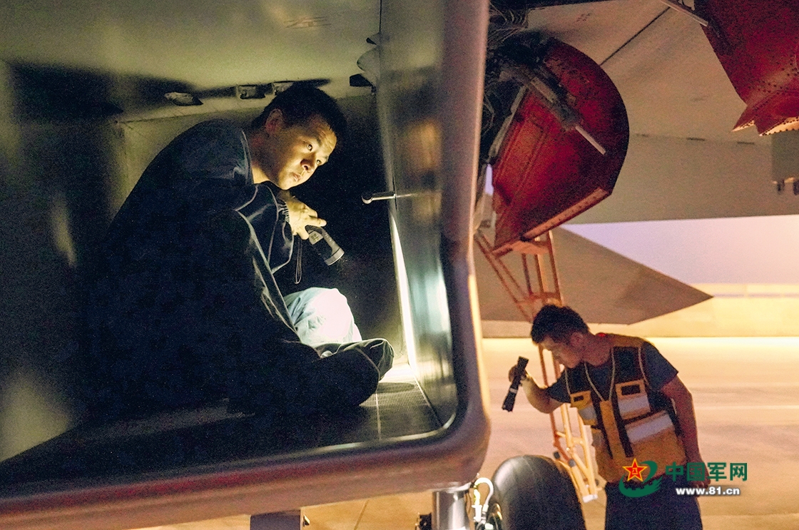 夜航影像丨空军航空兵某旅机务官兵保障夜间飞行训练