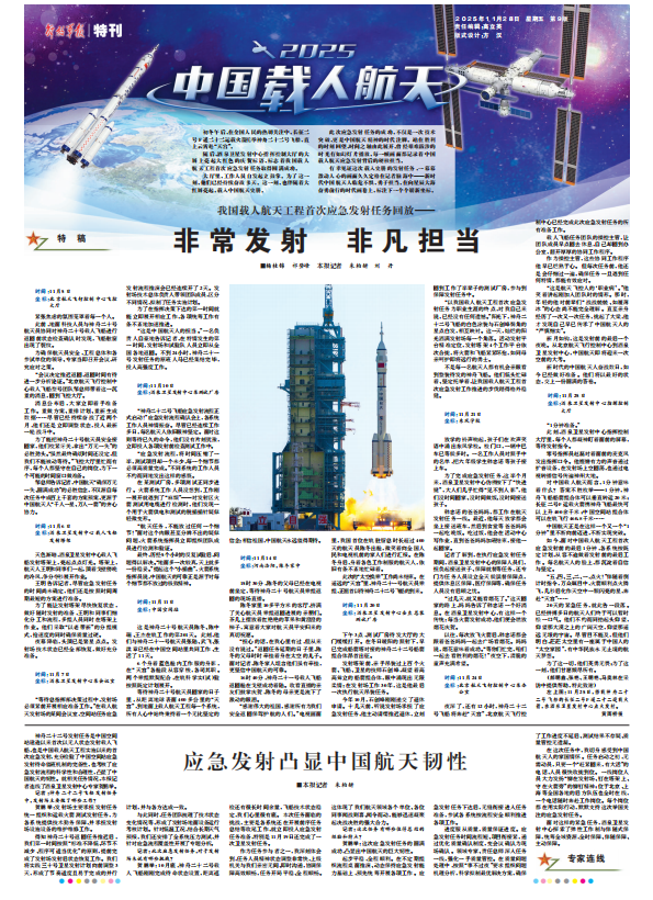 神舟二十二号发射任务是中国空间站建造以来首次以无人状态发射载人飞船,也是中国载人航天工程实施以来的首次应急发射,充分检验了中国空间站应急发射待命值班机制的完备性,也考核了应急发射流程的科学性和合理性,凸显了中国航天的韧性。就相关任务情况,解放军报记者连线了酒泉卫星发射中心专家贺鹏举。