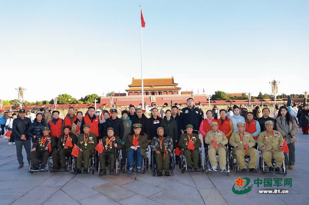 临别时分,老兵们纷纷在国旗下、城楼前合影。他们的身影与巍峨的城楼、飘扬的国旗,共同定格为一幅幅动人画卷。