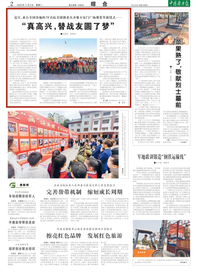 近日,来自全国各地的75名抗美援朝老兵齐聚天安门广场观看升旗仪式——