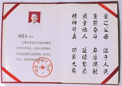 “父亲说要捐献遗体,我们做子女的开始虽然有些不舍,但仔细想想,父亲的选择我们也并不意外。”张凤仙回忆,“父亲常和我们说,和他一起打仗的战友大部分都牺牲在战场上,他能活着就是一种幸运,他要力所能及地为党和人民作贡献。”