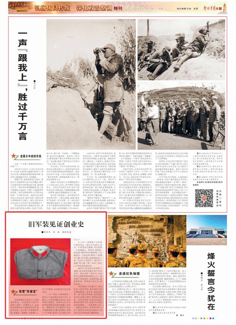 走进新疆军区阿拉山口边防连荣誉室,一件洗得发白的旧军装映入眼帘。军装的主人,是连队前身阿拉山口边防站的首任站长吴光胜。这不是一件普通的军装,更像是一面旗帜,承载着以上率下的精神,诉说着连队的血脉传承。