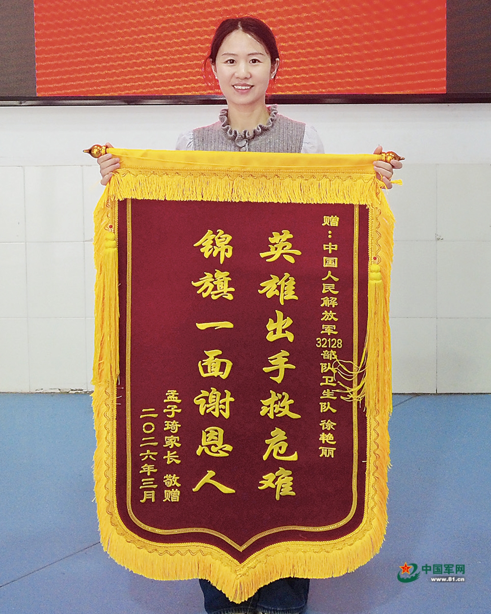 3月9日,徐艳丽回到老部队接受锦旗。刘彦 摄