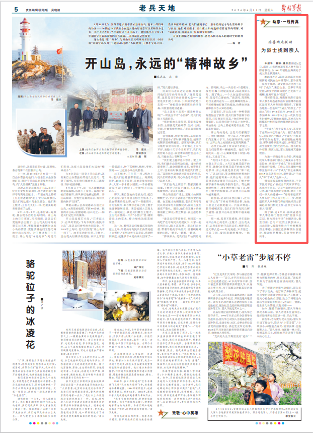 得知叔叔墓地找到的消息,于金芳激动不已:“叔叔当年离家参军后,再也没有回来。父亲生前常念叨这位兄弟,如今得知他的安葬地,弥补了我们一家人的遗憾……”海南省退役军人事务厅工作人员介绍,下一步,两地退役军人事务部门将协同做好烈士家属赴琼祭扫相关工作,让烈士早日与亲人“团圆”。