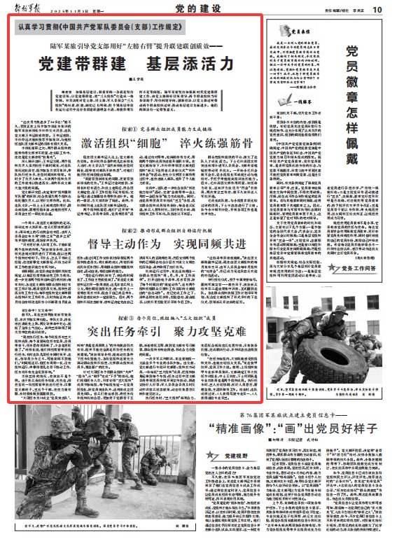 陆军某旅引导党支部用好“左膀右臂”提升联建联创质效——