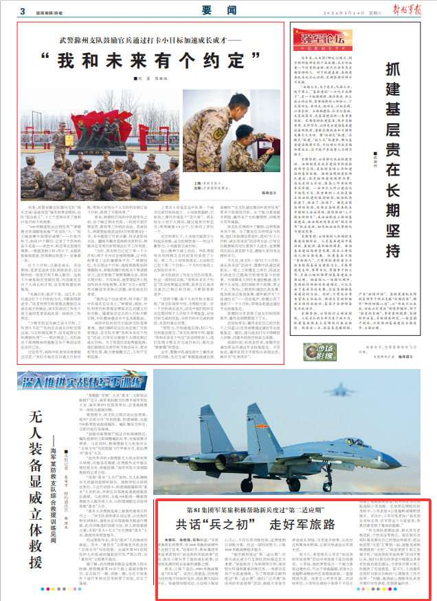 解放军报讯 张桂海、任和报道:“非常感谢班长的帮带,我3000米跑的成绩终于达到了优秀。”初春时节,第81集团军某旅某营组织“说说我的军旅故事”活动,新兵小陈分享了他的成长故事,话语间充满对班长张豪的感激之情。