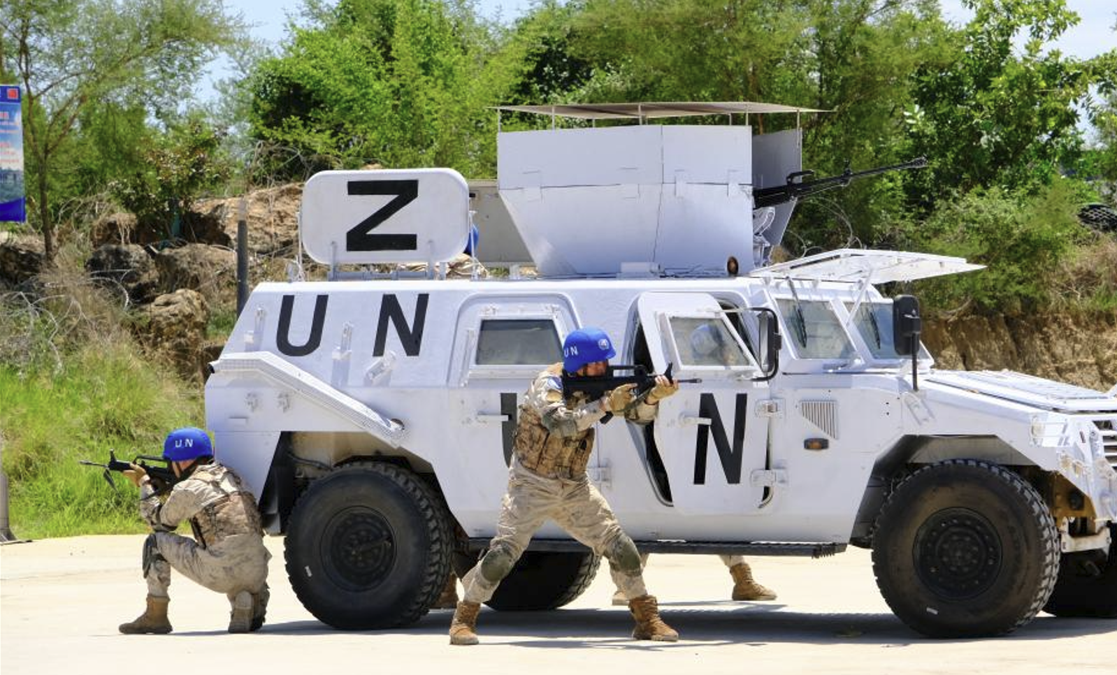 ▲“刘老庄连”远赴南苏丹执行国际维和任务,官兵进行班组战术动作课目训练