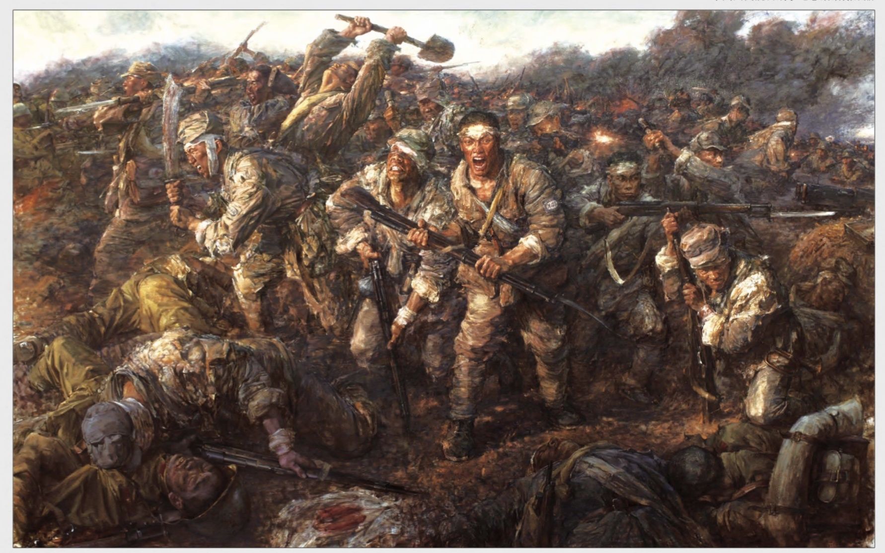 当敌人借着夜幕掩护汹涌而来时,失去右手的白思才猛地跃出战壕,大喊一声:“同志们,杀!”多处负伤,已成“血人”的李云鹏边冲边喊:“和敌人拼啦!”在一片壮烈的喊杀声中,战士们与敌人展开白刃格斗,在敌众我寡、弹尽粮绝的环境下,依然决定战斗到最后一刻。刺刀捅弯了,就用枪托砸,枪托砸碎了,就用小锹砍,小锹砍断了,就用双手掐,双手负伤了,就用牙齿咬……终因敌我力量悬殊太大,全部壮烈牺牲。