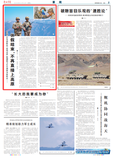 前不久,某连二级上士陈天义结束休假归队,经过返岗过渡休整,身体逐步适应高原环境,随后他奔赴海拔4300多米的高原驻训场,在重火器实弹射击训练中取得首发命中的好成绩;驻海拔4600多米的标沙拉错哨所下士罗荣有,休整后重返哨位,不仅在体能考核中表现出色,还在最近一次巡逻任务中首次担负排头兵重任。“组织把我们的困扰放心上,我们更要全身心投入训练!”罗荣有告诉记者,“返岗过渡”机制赢得战友们纷纷点赞,大家扎根边防、建功边防的动力更足了。