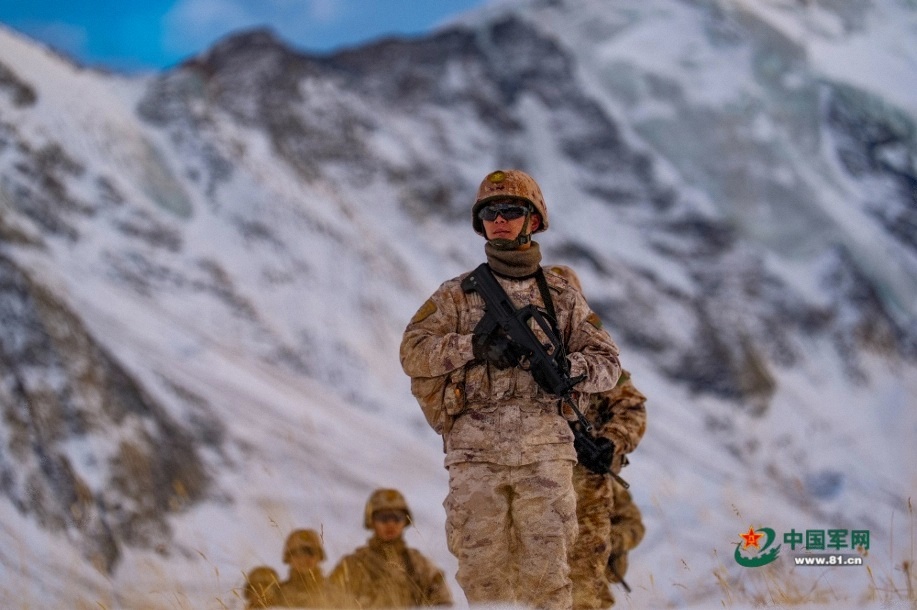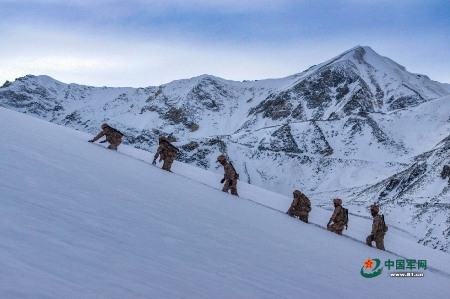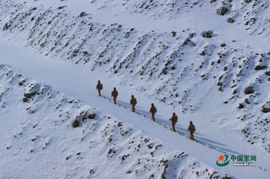 官兵在巡逻路上行进。马文清 摄