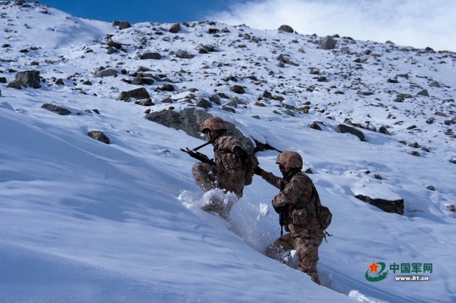 官兵艰难跋涉。马文清 摄