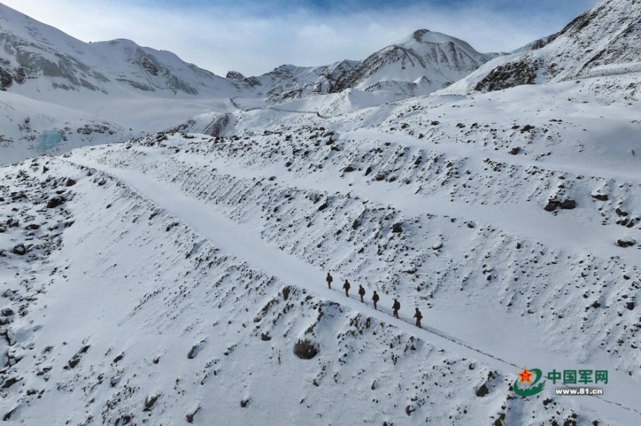 “气温零下29℃,风力8级……”新疆军区某边防团木孜边防连,驻守在木扎尔特冰川脚下。这里海拔3000多米,积雪终年不化。木孜,蒙古语意为“冰川”,该边防连官兵也被当地居民亲切地称为“冰川卫士”。新年伊始,6名“冰川卫士”迎着晨曦,又一次踏上风雪巡逻路。