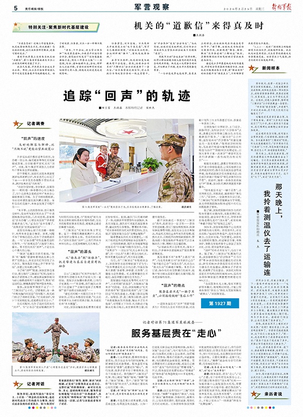 “服务基层不是‘一锤子买卖’,必须持续关注、不断改进,接续做好‘售后工作’。”采访中,一位教导员告诉记者,“三解回应”机制不仅能解决当下问题,还为持续跟踪解决服务过程中的衍生问题提供了便利。