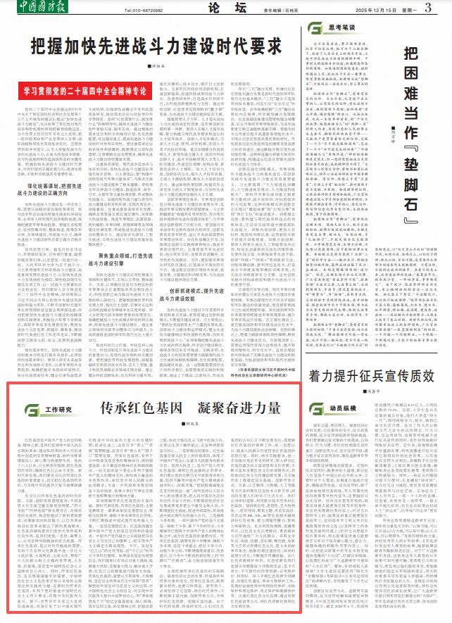 深刻理解传承红色基因的丰富内涵。新时代新征程,传承红色基因,主要是赓续老一辈革命家坚定理想信念、厚植为民情怀、锤炼斗争本领等优良传统,不断汇聚推进中国式现代化的强大力量。一是坚定理想信念。红色基因蕴含着中国共产党人的坚定信仰和价值追求。中国共产党自诞生之日起就把马克思主义写在自己的旗帜上,把实现共产主义确定为最高理想。今天。虽没有“打江山”的生死考验,但“守江山”的伟大斗争仍在继续。如果没有坚定的理想信念,我们就难以有效应对重大挑战、抵御重大风险、克服重大阻力、解决重大矛盾,红色江山的根基就可能发生动摇。传承红色基因,就要从不畏艰难、不惧牺牲、坚定信念的革命历史中汲取“营养”,做到始终坚定对马克思主义的信仰、对中国特色社会主义的信念、对实现中华民族伟大复兴中国梦的信心,用“革命理想高于天”的信念强基固本、凝心铸魂,筑牢信仰之基、补足精神之钙、把稳思想之舵,如此才能在乱云飞渡中把准方向,在泰山压顶下巍然挺立,在各种诱惑前坚守初心。二是厚植为民情怀。红色基因蕴含着人民至上的价值取向,体现了中国共产党全心全意为人民服务的根本宗旨。坚持人民至上,是共产党人传承红色基因、赓续红色血脉的必然要求。我们要从党的光辉历史中汲取营养和力量,坚持不懈用中国共产党人精神谱系滋养初心、淬炼灵魂,“把屁股端端地坐在老百姓的这一面”,始终坚持以人民为中心的发展思想,把人民对美好生活的向往作为奋斗目标,不断推动经济社会发展成果更多更公平惠及全体人民,不断增进民生福祉,促进共同富裕,形成推进中国式现代化的强大合力。三是锤炼斗争本领。一部中国共产党的奋斗史就是一部敢于斗争、善于斗争的历史,斗争精神早已熔铸于中国共产党人的精神血脉之中,成为红色基因的重要内容。传承红色基因,就要发扬斗争精神、锤炼斗争本领、坚定斗争意志、把好斗争方向、站稳斗争立场,不断增强使命意识、忧患意识,在斗争中不断战胜新征程上的“绊脚石”“拦路虎”,奋力推进强国强军伟大事业。
