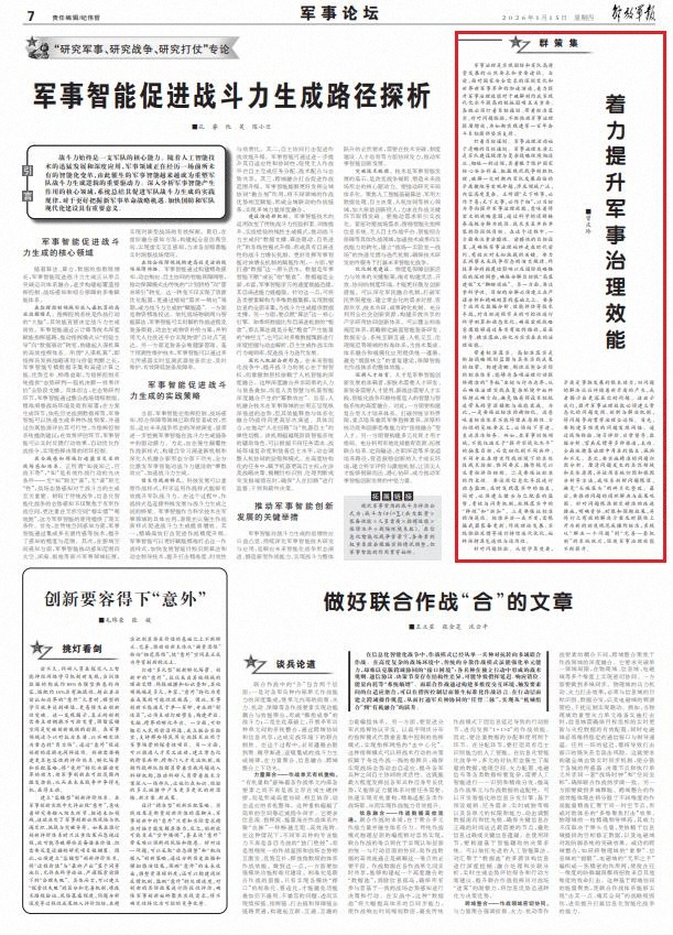 着力提升军事治理效能