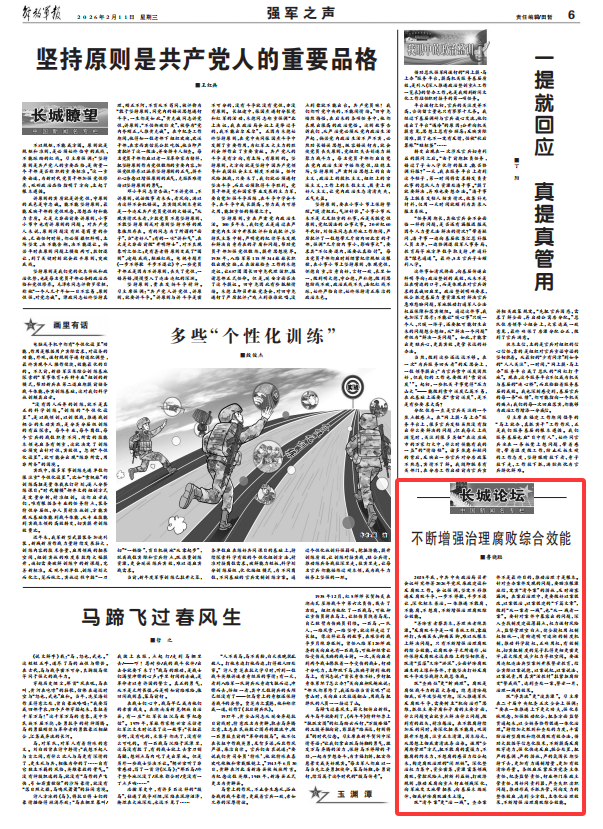 既“查病灶”更“析病理”。腐败是腐蚀战斗力的最大毒瘤。隐患清除越彻底,百年攻坚越可期。深入推进军队反腐败斗争,需要树立“靶向治疗”思维,抓住主要矛盾和矛盾的主要方面,什么问题突出就重点解决什么问题,做到有的放矢、精准惩治。在不敢腐持续加压的同时,要深化拓展不能腐,巩固提升不想腐,注重正本清源、固本培元,从思想上彻底肃清流毒沾染。运用“全周期管理”方式,把不敢腐的震慑力、不能腐的约束力、不想腐的感召力结合起来,构建腐败治理的“闭环链”。深化整治权力集中、资金密集、资源富集领域腐败,管控风险点、斩断利益链、打破潜规则,推动反腐向重点行业领域深化、向军地交叉地带拓展、向基层末端延伸,彻底铲除腐败滋生土壤。