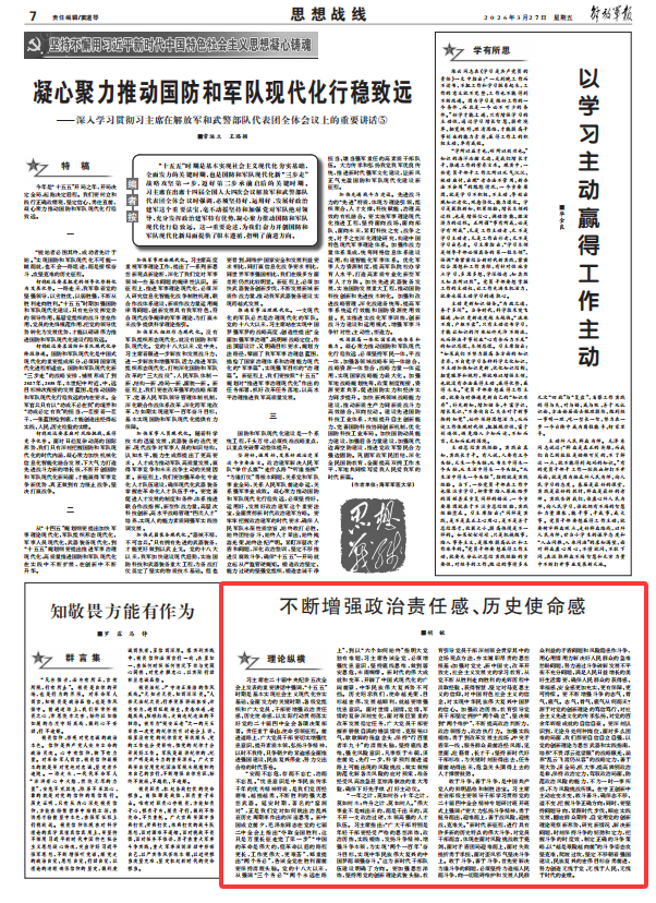 不断增强政治责任感、历史使命感