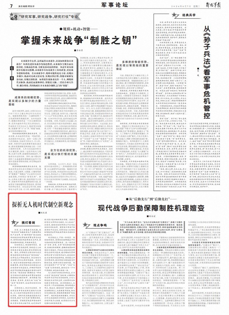 当前,无人智能技术的发展,使“低空经济”拓展新质生产力疆域带来的产业变革,与“廉价饱和”战术挑战传统防空体系带来的军事变革交织叠加,给传统制空观念带来巨大冲击,需要拓展新的维度、升级新的范式。