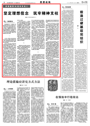 95年来,人民军队从胜利走向胜利的斗争实践,充分彰显了理想信念的伟大力量。崇高的理想,坚定的信念,是革命军人的政治灵魂,是克敌制胜、拒腐防变的决定性因素。