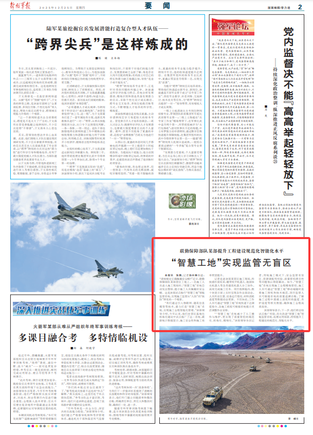 “我们通过引入物联网、建筑信息模型等技术,着力打造‘智慧工地’系统,实现施工全程智能化管理。”该部领导介绍,今年以来,他们在营区基地化标准化建设中试点推广了这一系统,最新统计数据显示,施工安全性和施工效率明显提升。