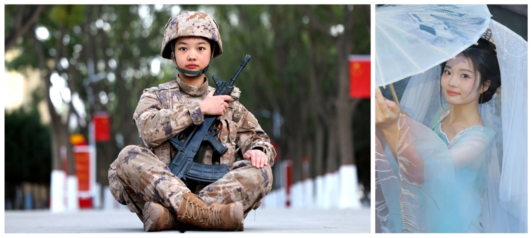 李灵洁:纷飞细雨打湿衣裳,嘹亮口号响彻操场,迷彩身影整齐列队。从普通女孩到飒爽女兵,是我人生中最宝贵的财富。谁说女子不如男,木兰故事永传扬。红装亦可披戎装,铿锵玫瑰自飘香。未来,我将继续在军营中绽放。
