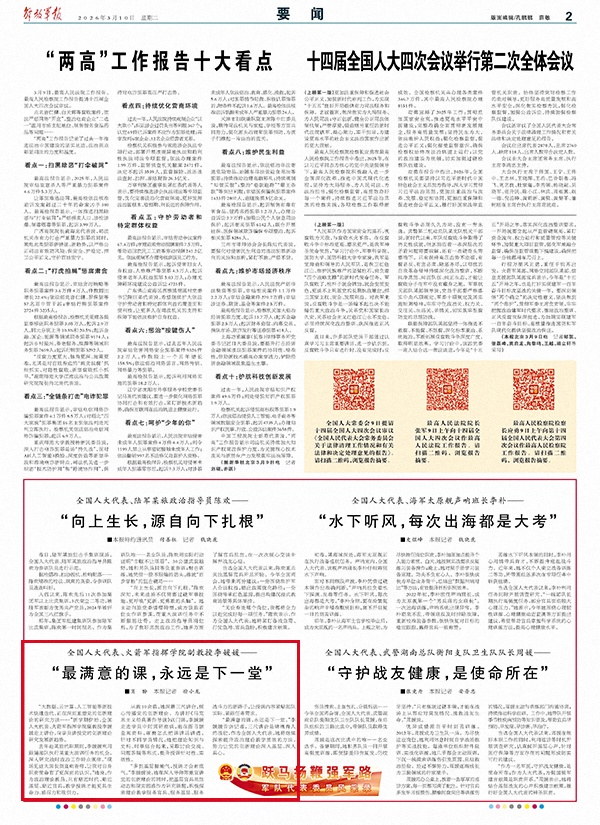 “最满意的课,永远是下一堂。”李媛媛告诉记者,三尺讲台是铸魂育人的战位,作为全国人大代表,她将继续探索提升政治理论教学质效的方法,努力让党的创新理论深入基层、深入兵心。